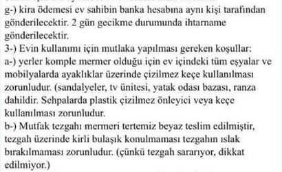 İlanda öne çıkan hükümler arasında yalnızca resmi nikâhlı ailelere kiralama yapılacağı, en az bir aile bireyinin memur olması gerektiği ve en fazla bir çocuklu ailelerin kabul edileceği yer aldı. Ev içinde sigara içilmesinin kesinlikle yasak olduğu, mutfak tezgâhında kirli bulaşık bırakılmaması ve tezgâhın ıslak tutulmaması gerektiği gibi günlük yaşamı düzenleyen ayrıntılar da bildirildi.