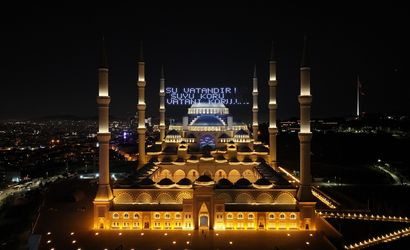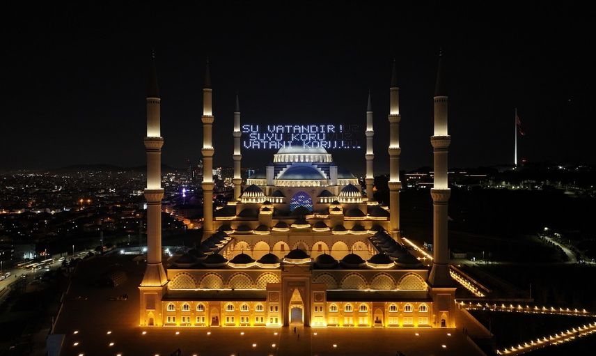 Ulusal Su Verimliliği Seferberliği" kapsamında Dünya Su Günü'nde düzenlen etkinliklerde Çamlıca Camii'nin dijital mahyasında "Su Vatandır, Suyu Koru, Vatanı Koru" mesajı paylaşıldı.