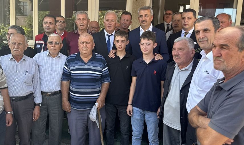 Edirne'de köy kahvesinde vatandaşlarla sohbet eden Edirne Valisi Yunus Sezer, 15 yaşındaki ikiz kardeşlerin "düve" isteğini duyunca onları proje desteğiyle sevindirdi. İkiz kardeşler Ahmet Berk (solda) ve Talat Burak Tezcan müjde karşısında çok sevindiklerini söyledi.