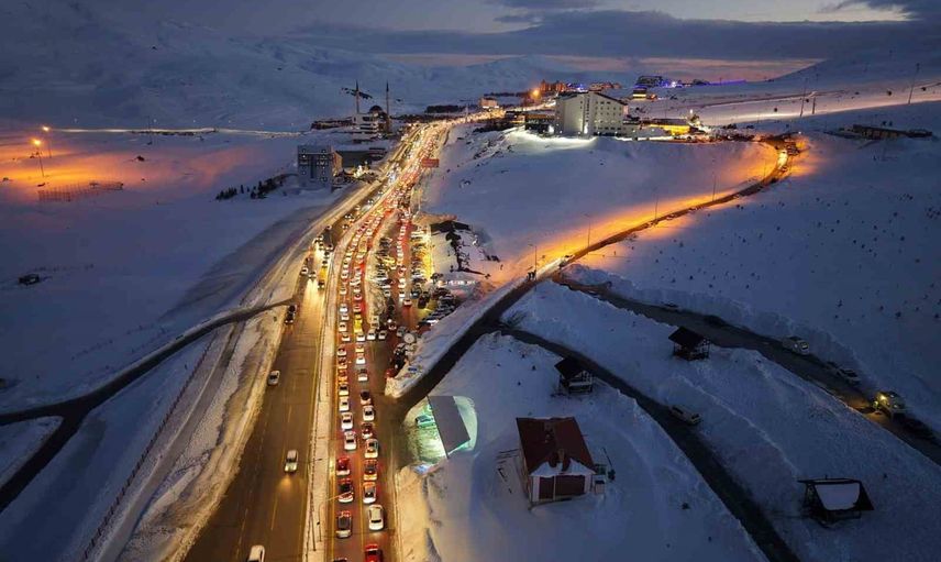 Kayseri’de gözde bir destinasyon olan Erciyes, sömestir tatilinde de kayakseverlerin vazgeçilmezi oldu. Kayak merkezindeki yoğunluk havadan görüntülendi.