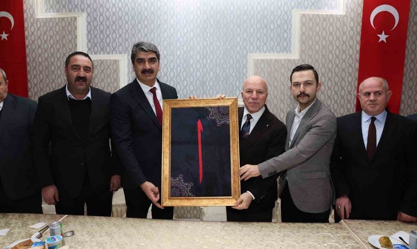Tören sonunda Aşkale Belediye Başkanı Şenol Polat, Başkan Mehmet Sekmen'e bir tablo hediye etti.