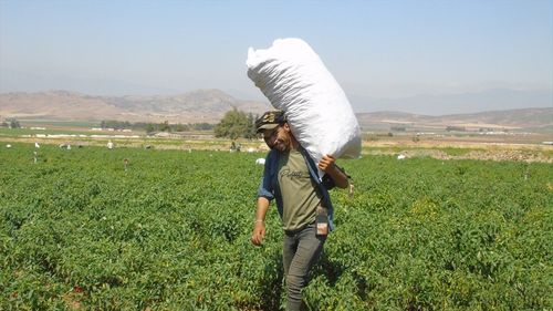 Gaziantep İslahiye'de sofralık kırmızı biber hasadı başladı
