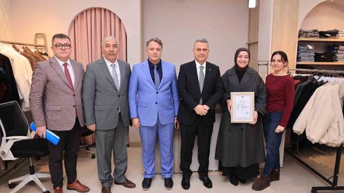 İlkadım Belediyesi 2025’te 628 işyerine ruhsat verdi; 2026’nın ilk işyeri ruhsatı Elzem Boutique sahibine Başkan İhsan Kurnaz tarafından takdim edildi.