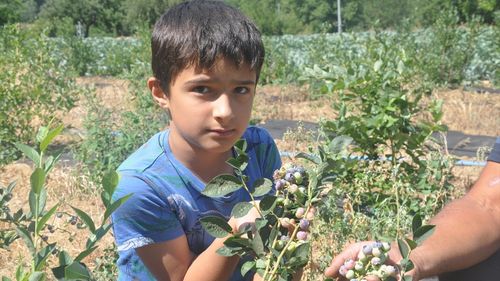 İzmir'de 3 yıl önce ekilen maviyemişin ilk hasadı yapıldı. Çiftçi Zafer Tepe, 45 kilogram ürün topladı.
