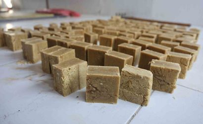Üretim süreci şu şekilde işliyor: önce zeytin ve defne yağı ısıtılıyor, ardından kostik malzemesi ekleniyor ve durmadan 40 dakika boyunca karıştırılıyor. Karıştırma sonrası karışım kalıba dökülüp bir saat içinde kesilerek sabun haline geliyor.