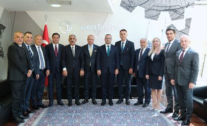 ASO'nun ağustos ayı meclis toplantısı, Türkiye Cumhuriyet Merkez Bankası Başkanı Fatih Karahan'ın (sağda) katılımıyla gerçekleştirildi. Karahan'ı toplantıya gelişinde, Ankara Sanayi Odası (ASO) Başkanı Seyit Ardıç (solda) karşıladı.