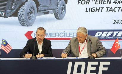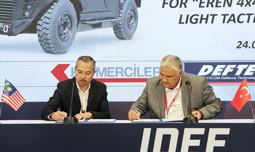 Anadolu Ajansının (AA) "Global İletişim Ortağı" olduğu 17. Uluslararası Savunma Sanayii Fuarı (IDEF 2025), Milli Savunma Bakanlığının ev sahipliğinde, Cumhurbaşkanlığı Savunma Sanayii Başkanlığının desteğiyle, Türk Silahlı Kuvvetlerini Güçlendirme Vakfının (TSKGV) yönetim ve sorumluluğunda ve KFA Fuarcılık AŞ'nin organizatörlüğünde İstanbul Fuar Merkezi'nde (İFM) devam ediyor. Katmerciler ile Malezyalı savunma sanayisi şirketi DEFTECH arasında "EREN 4X4 Yüksek Hareket Kabiliyetli Hafif Taktik Araçlar" için işbirliği anlaşması imzalandı. İmza törenine Katmerciler Üst Yöneticisi (CEO) Mehmet Katmerci (sağda) ve DEFTECH CEO'su Mohammad Shanaz bin Mohammad Shees (solda) katıldı.