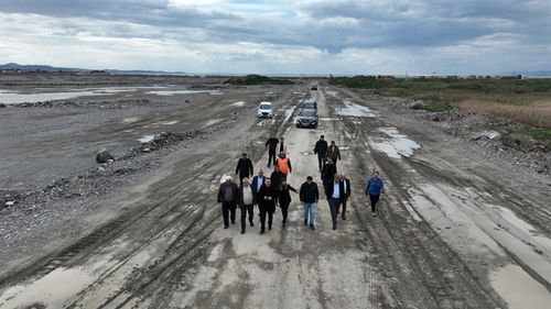 Kaymakam Ahmet Odabaş ile Belediye Başkanı Mehmet Ertaş, yapımı süren Jeotermal Kaynaklı Sera OTB projesinde saha incelemesi yapıp teknik değerlendirme gerçekleştirdi.