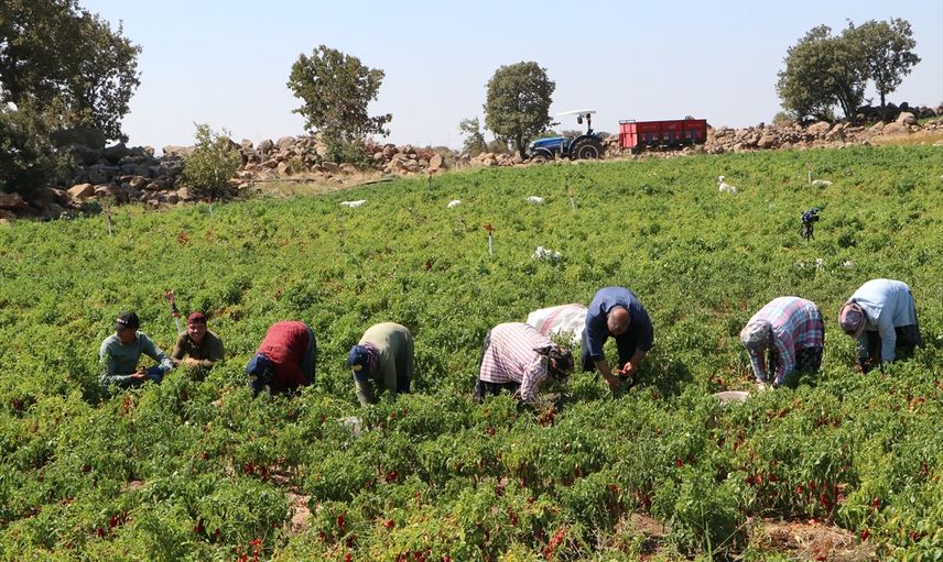 Musabeyli ilçesine bağlı Hasancalı köyünde üretim yapan Mikail Duman, AA muhabirine, biberleri toplayıp kuruttuktan sonra piyasaya sürdüklerini ifade etti.