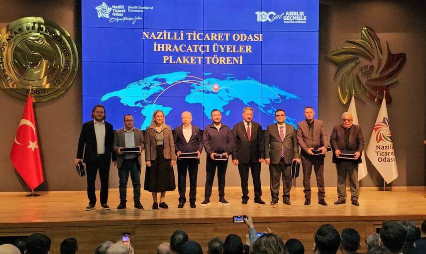 Ege İhracatçılar Birliği listesinde yer alan başarılı firmalar, Nazilli Ticaret Odası tarafından ödüllendirildi ve başarı ödülleri protokol üyeleri tarafından firmaların yetkililerine takdim edildi.