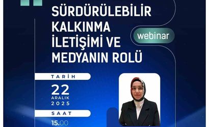Webinar, 22 Aralık Pazartesi saat 15.00’te başlayacak. Programın ana oturumunda Cumhurbaşkanlığı İletişim Başkanlığı İletişim Uzmanı Dr. Zeynep Zelan konuşmacı olarak yer alacak. Etkinlik kapsamında sürdürülebilir kalkınma politikalarının kamuoyuna etkili biçimde aktarılmasında iletişim stratejileri ve medyanın rolü ele alınacak.