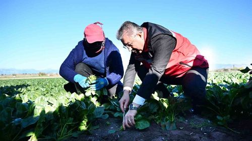 Osmaniye'de ıspanak hasadı Kadirli Vayvaylı'da başladı; kent 11'inci sırada, hedef 3 bin tonu aşkın rekolte. Vali Erdinç Yılmaz tarlada üreticilerle oldu.