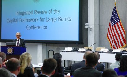 ABD Merkez Bankası (Fed) Başkanı Jerome Powell (fotoğrafta), büyük bankaların yeterli sermayeye sahip olması ve başlıca risklerini etkin bir şekilde yönetmesi gerektiğini belirterek, aynı zamanda rekabetçi bir şekilde ekonomik büyümeye katkı sunmasının önemli olduğunu söyledi. Powell, başkent Washington'da düzenlenen "Büyük Bankalar için Sermaye Çerçevesinin Bütüncül Gözden Geçirilmesi Konferansı"nda açılış konuşmasını yaptı.