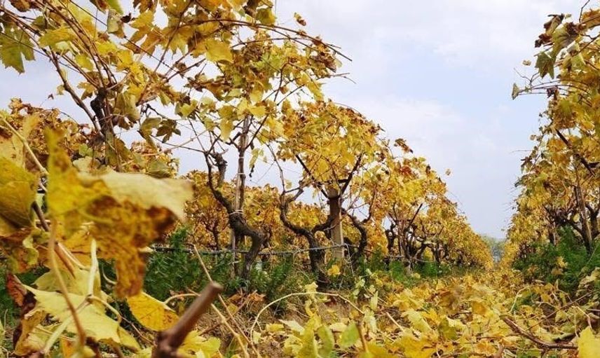 Manisa'nın Sarıgöl ilçesinde üzüm bağlarında sararan yapraklar, ortaya kartpostallık manzaralar çıkarıyor. Hasadın tamamlandığı bağlarda işçiler, doğal güzellik eşliğinde budama çalışmalarını sürdürüyor.