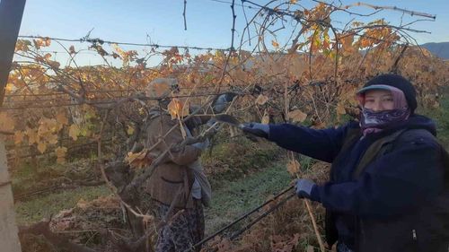 Sarıgöl’de yürütülen üzüm bağı yenileme çalışmaları, 12 kişilik kadın ekibe günlük 1.500 lira yevmiye ile istihdam sağlıyor.
