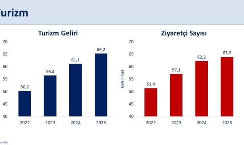 Turizmde sağlanan performansa da dikkat çeken Şimşek, geçen yıl Türkiye'nin 63,9 milyon ziyaretçi ağırladığını ve "2025’te turizm gelirleri yüzde 6,8 artışla 65,2 milyar dolara ulaşarak OVP hedefini aştı" ifadelerini kullandı. Turizmi dört mevsime ve farklı alanlara yaymaya yönelik politikaların katkısıyla kişi başına ortalama harcamanın bin doların üzerine yükseldiğini belirtti.