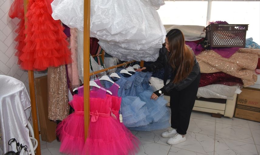 Şırnak'ın Cizre ilçesinde yaşayan 20 yaşındaki Azize Ergün, devlet desteği sayesinde çocuk kıyafetleri üretiyor. Küçük ve Orta Ölçekli İşletmeleri Geliştirme ve Destekleme İdaresi Başkanlığından (KOSGEB) aldığı makine desteği ile atölye açan Ergün, 0-14 yaş arasındaki kız çocukları için ürettiği abiyeleri hem internet üzerinden hem de mağazasında satıyor.