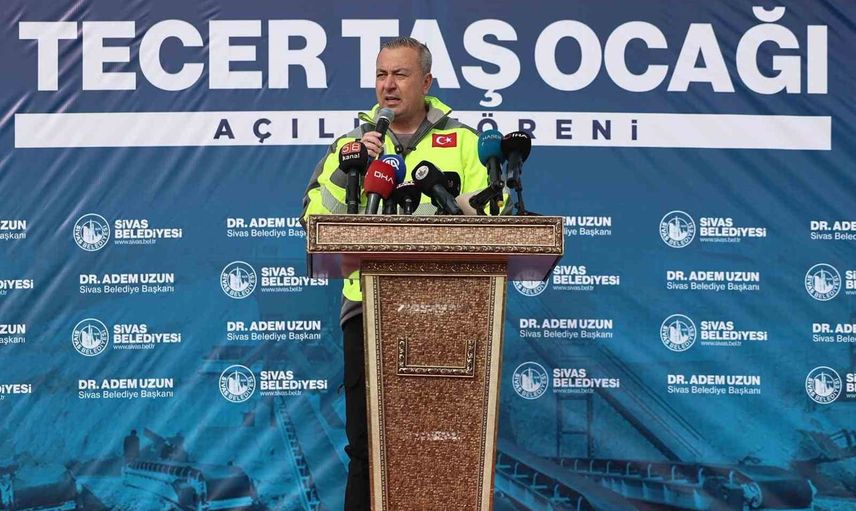 Dr. Adem Uzun konuşmasında: "Burası 610 dönümden oluşan bir taş ocağı alanıdır. Tesis 240 dönümü oluşturuyor, geri kalanını da bizim tahsis aldığımız taş ocağı alanı oluşturmakta. Baktığımız zaman bu tesisi açmak için 1 yıldır mücadele veriyoruz. Alanı düzenledik, yollarını açtık, tesisin ihalesini yaptık. Saatte 375 ton taş üreteceğiz. Bu şu demek; Sivas’a senelik 1,5 milyon tonun üzerinde taş üretim ve kırma tesisini kazandırıyoruz. Taş işi yapanlar bilirler 140’lık bir çeneye sahip olan bir taş tesisini kuruyoruz. Bunun dışında 0 milimetreden istediğimiz taş örtüsünde taşı kırabileceğimiz bir tesis. Bunların yanında baktığımız zaman tesisin en önemli özelliklerinden birisi de çevreci olması. Toz ünitelerinden tutun da su sistemlerine kadar Sivas’ın en modern, çevreci tesisini kazandırmış oluyoruz. Bununla birlikte yapmış olduğumuz yatırım yaklaşık 100 milyon TL. Altını özellikle çizmek istiyorum, Sivas Belediyesi olarak şimdiye kadar yollar, altyapı, park ve bahçe alanları oluşturuyoruz ama bu tesisin bir özelliği var. Bu tesis Sivas Belediyesine kar sağlayacaktır. İşhan’daki ocakta bu sene 95 milyon kar elde etmişiz, bu tesisten gelecek seneki hedefimiz 150 milyon sağlamak. Bakın iki taş ocağından 250-300 milyon civarında Sivas Belediyesine kâr sağlayan bir tesis kuruyoruz" dedi.