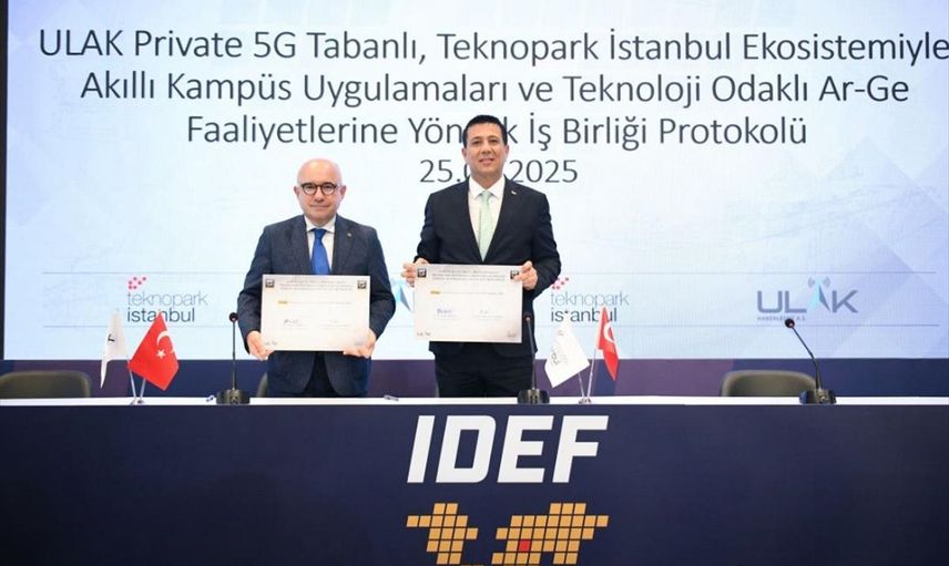 Anadolu Ajansının (AA) "Global İletişim Ortağı" olduğu 17. Uluslararası Savunma Sanayii Fuarı (IDEF 2025), Milli Savunma Bakanlığının ev sahipliğinde, Cumhurbaşkanlığı Savunma Sanayii Başkanlığının desteğiyle Türk Silahlı Kuvvetlerini Güçlendirme Vakfının yönetim ve sorumluluğunda, KFA Fuarcılık AŞ'nin organizatörlüğünde İstanbul Fuar Merkezi'nde (İFM) düzenleniyor. Türkiye’nin teknoloji geliştirme bölgelerinden Teknopark İstanbul, milli haberleşme teknolojileri alanında lider ULAK Haberleşme AŞ ile stratejik bir iş birliğine imza attı. Teknopark İstanbul Genel Müdürü Prof. Dr. Abdurrahman Akyol (sağda) ve ULAK Haberleşme Genel Müdürü Ruşen Kömürcü (solda) protokolü imzaladı.