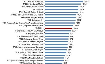 Verilerde, fiyat düzeyi endeksi en yüksek bölge 112,6 ile TR10 (İstanbul) olarak kaydedilirken, en düşük endeks 91,5 ile TRC3 (Mardin, Batman, Şırnak, Siirt) bölgesinde görüldü.