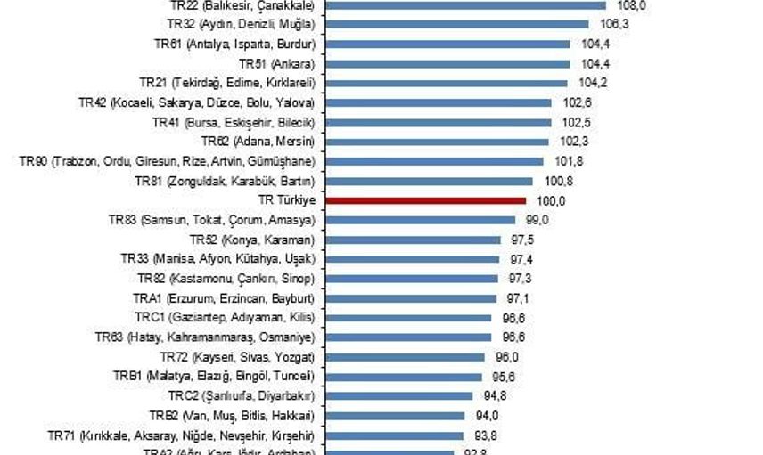 Çalışma, İstatistiki Bölge Birimleri Sınıflaması (İBBS) 2. Düzey esas alınarak hazırlandı ve bölgesel fiyat düzeyleri ortak bir mal ve hizmet sepeti üzerinden hesaplandı. Endeks değerinin 100 ün üzerinde olması, ilgili bölgenin Türkiye ortalamasına kıyasla daha pahalı olduğunu gösteriyor.