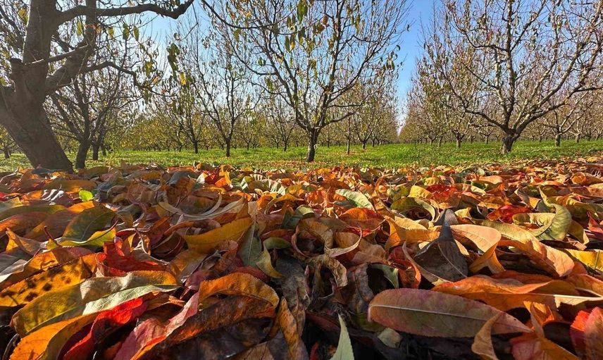 Zirai don ve kuraklık nedeniyle çok zor bir sezon geride kalırken, yorgun düşen meyve ağaçları sonbahar ve kış renklerine büründü.