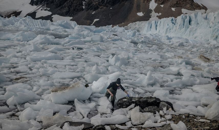 Türk bilim insanları, 9. Ulusal Antarktika Bilim Seferi kapsamında ulusal ve uluslararası boyutta önem arz eden ve öncelikli bilimsel temalardan olan "insanların sucul ekosistemlere dolaylı ve doğrudan etkilerini" araştırdı. Sefer katılımcıları sahada çalışmalarını yürütürken görülüyor.