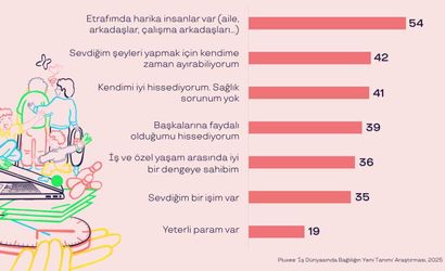 Türkiye’de çalışanların iyi yaşam algısında maddi göstergelerden çok insan ilişkileri öne çıkıyor. Çalışanların %54ü "etrafımda iyi insanlar var"ı hayatı iyi kılan en önemli unsur olarak gösterirken; %42si kendine zaman ayırabilmeyi, %41i ise iyi hissetmeyi ikinci ve üçüncü sırada belirtiyor. "Haftada fazladan 4 saatin olsaydı ne yapardın?" sorusuna verilen yanıtlarda %31 daha fazla aile ve arkadaş zamanı, %19 ise egzersiz tercih ediyor.