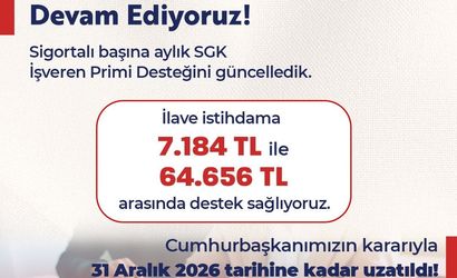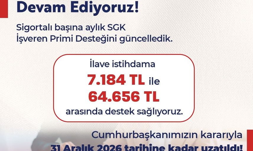 Bakan, özellikle kadın, genç ve mesleki yeterlilik belgesi sahiplerinin istihdamına destek verdiklerini vurguladı. Ayrıca uygulamanın Cumhurbaşkanımızın imzasıyla Resmi Gazete’de yayımlanan kararla 31 Aralık 2026 tarihine kadar uzatıldığını açıkladı.