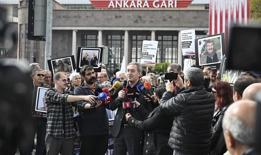 Ankara Garı önünde düzenlenen anma etkinliğinde, 10 Ekim 2015'te terör örgütü DEAŞ mensubu iki canlı bombanın gerçekleştirdiği saldırıda hayatını kaybedenler anıldı.