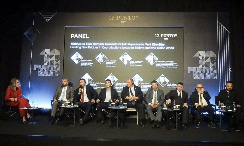 TRT tarafından yedinci kez düzenlenen senaryo geliştirme ve ortak yapım platformu 12 Punto'da, "Türkiye ile Türk Dünyası Arasında Ortak Yapımlarda Yeni Köprüler" başlıklı panel düzenlendi. Panelde Azerbaycan Sinema Genel Müdür Yardımcısı Gurban Primov (sol 2), Kırgızistan Sinema Genel Müdürü Ulan Adamaliev (sağ 4), Kazakistan Kazakfilm Direktörü Asset Yernazarov (sol 4), Özbek Kino Genel Müdürü Shukhratulla Rzayev (sol 5), Türkmenistan Oğuzhan Türkmenfilm Birliği Yaratıcı İşlerden Sorumlu Başkan Yardımcısı Sahysalyh Bayramov (sağ 3), Kültür ve Turizm Bakanlığı Sinema Genel Müdürü Birol Güven (sağ 2), TRT Sinema Müdürü Faruk Güven (sağda) ve Kazakistan Ulusal Sinema Destekleme Merkezi Yönetim Kurulu Başkanı Kurmanbek Zhumagali (sol 3) konuşmacı olarak yer aldı.