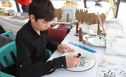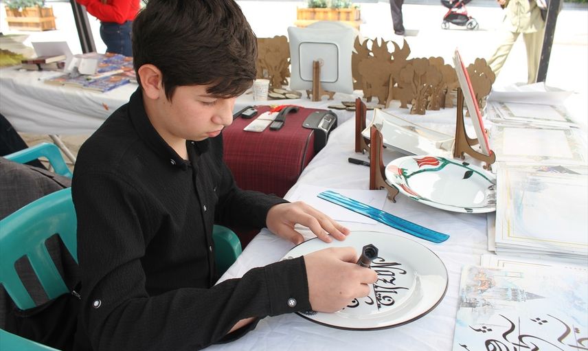 Van'ın İpekyolu ilçesinde, kaligrafi sanatını babasından öğrenen 13 yaşındaki Yusufcan Zahiroğlu, ürettiği eserleri sanatseverlerle buluşturmak için sergi ve fuarlara katılıyor.