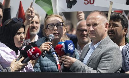 "Emek, Dijitalleşme ve Sosyal Adalet Uluslararası Kongresi" için Ankara'da bulunan 41 ülkeden 200 sendika lideri, Gazze'de yaşananlara karşı Birleşmiş Milletler (BM) Türkiye Temsilciliği önünde bir araya geldi.