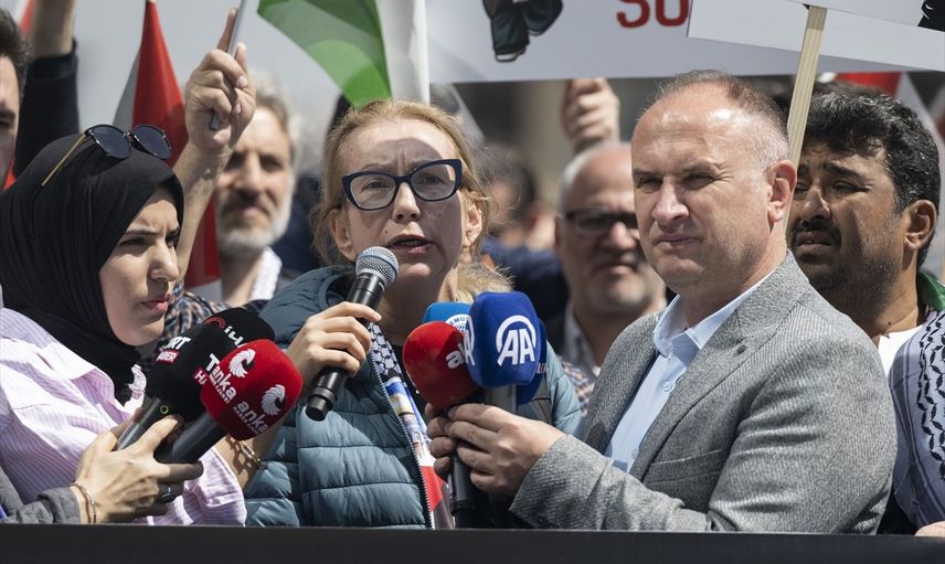 41 ülkeden gelen 200 sendikacı lider, Birleşmiş Milletler (BM) Türkiye Temsilciliği önünde, Gazze'de devam eden saldırılara karşı bir araya geldi. Bir haftadır süren "Emek, Dijitalleşme ve Sosyal Adalet Uluslararası Kongresi" kapsamında düzenlenen bu etkinlikte katılımcılar, "Savaşa hayır", "Özgür Filistin" gibi sloganlar ve 17 bin 954 çocuk, 12 bin 365 kadın katledildi yazılı pankartlarla protesto eylemi gerçekleştirdi.