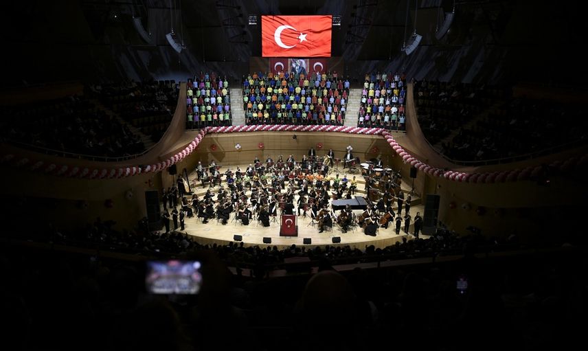 İstiklal Marşı'nın okunmasının ardından sahne alan çocuk koroları, "Gel seninle birlikte", "Orman", "Do re mi", "Bir dünya bırakın", "Atam", "İzindeyiz", "Bir köy var uzakta" ve "Kuş sesleri" gibi eserleri seslendirerek duygusal anlar yaşattı.