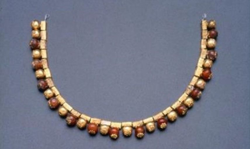 New York Kültür ve Tanıtma Ataşesi Demirel, kolyenin yaklaşık 20 santimetre uzunluğunda olduğunu ve altın ile karnelyan taşlarından yapıldığını belirtti.