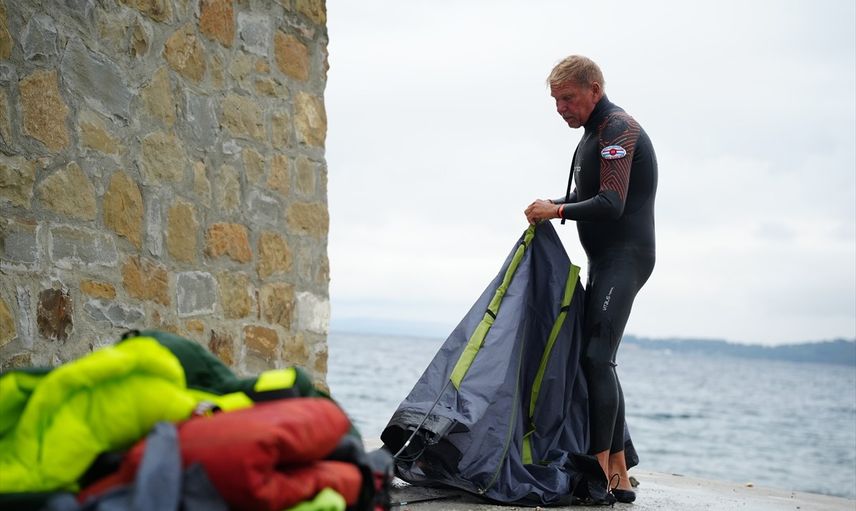 SEVİ GÖZAY UĞURLU/ÇİĞDEM ALYANAK - Türkiye'den İsveç'e yüzme hedefiyle İstanbul'dan kulaç atmaya başlayan 66 yaşındaki İsveçli yüzücü Jari Cennet Tammi, çadırından uyku tulumuna, yiyecekten güneş paneline kadar tüm ihtiyaçlarını sığdırdığı üç su geçirmez çantasıyla Çanakkale'ye ulaştı.