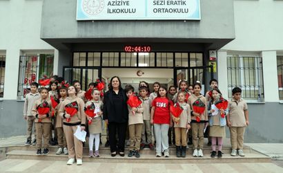 Okul bahçesinde düzenlenen törende Okul Müdürü Serkan Çeliktaş, öğrenciler ve Hatice Berber’in çocukları, Berber’e çiçek takdim ederek teşekkür etti.