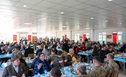 Konuşmaların ardından şehit aileleri ile gaziler, protokol ve askerlerle birlikte yemek yedi.