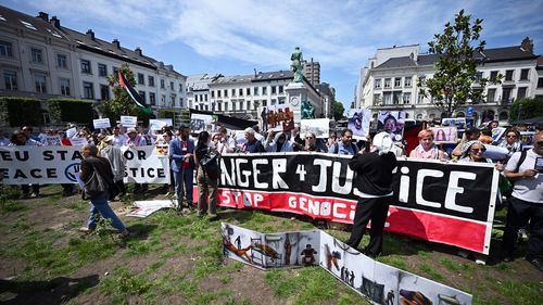 AB çalışanları, 16 Haziran'da yapılacak açlık grevine destek için Avrupa Parlamentosu önünde bir araya geldi. Filistin için ses yükseltildi.