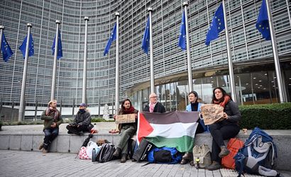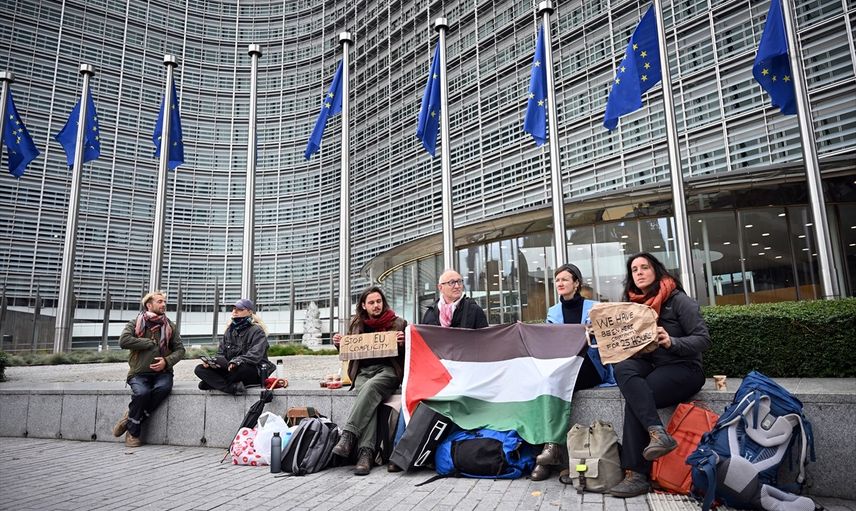 Avrupa Birliği (AB) Komisyonu binası önünde toplanan ve geceyi binanın önünde geçiren bir grup, AB'ye İsrail'e ateşkese rağmen baskıyı sürdürmesi ve Tel Aviv'i savaş suçlarından sorumlu tutması çağrısında bulundu.