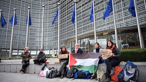 AB Komisyonu önünde 25 saattir eylem yapan grup, İsrail'le normalleşmeye karşı çıkarak AB'den Ortaklık Anlaşması'nı feshetmesini talep etti.