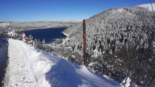 Abant Gölü'nde devam eden kar yağışı kar kalınlığını 1 metreye çıkardı; ziyaretçiler ve ekipler bölgeye akın etti.