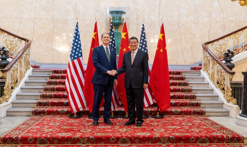 ABD ve Çin'in, karşılıklı tarife artışlarıyla tırmanan ticaret geriliminin çözümü için yürüttüğü müzakerelerin yeni turuna İngiltere'nin başkenti Londra'da başladığı bildirildi. Çin'in Ekonomik İlişkilerden Sorumlu Başbakan Yardımcısı Hı Lifıng (sağ 3) Çin-ABD ekonomi ve ticaret istişare mekanizması toplantısı için ABD'li yetkililerle Londra'da bir araya geldi. Müzakerelerde ABD tarafını Hazine Bakanı Scott Bessent (sol 3), Ticaret Bakanı Howard Lutnick (sol 2) ve Ticaret Temsilcisi Jamieson Greer (sol 1) temsil etti.