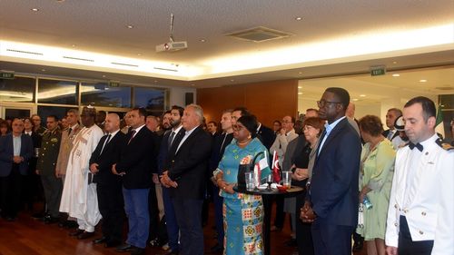 Abuja'da 30 Ağustos Zafer Bayramı resepsiyonu; Büyükelçi Mehmet Poroy ve Askeri Ataşe Albay Davut Velioğlu ev sahipliğinde düzenlendi, Nijerya Bakanı Bello Matawalle ve davetliler katıldı.