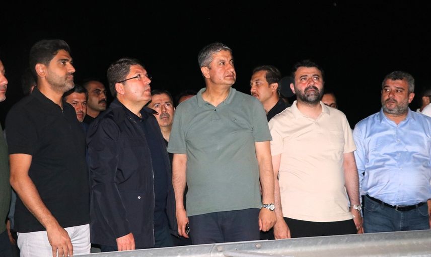 Adalet Bakanı Yılmaz Tunç, 26 Haziran'dan bu yana 33 ilde adli soruşturmalara konu olan yangınların meydana geldiğini belirterek, "33 ilde 97 şüpheli hakkında bugüne kadar işlem yapıldı. 97 şüpheliden 21'i tutuklandı, 47'si hakkında adli kontrol kararı verildi." dedi. Bakan Tunç (sol 2), Güvenlik ve Acil Durumlar Merkezi'nde Karabük Valisi Mustafa Yavuz'dan (ortada) bilgi aldıktan sonra beraberinde AK Parti Karabük milletvekilleri Cem Şahin (sağ 2) ve Durmuş Ali Keskinkılıç ile yangın bölgesinde inceleme yaptı.