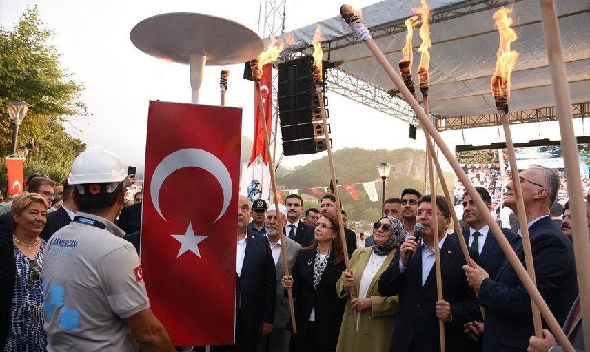 Adalet Bakanı Yılmaz Tunç, Amasra ilçesi Barış Akarsu Kültür Parkı'ndaki doğal gaz verme törenine katıldı.