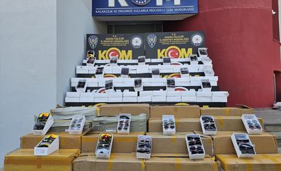 Adana'da gümrük kaçağı 2 bin 100 cep telefonu ile 12 bin güneş gözlüğü ele geçirilen iş yerindeki şüpheli gözaltına alındı.