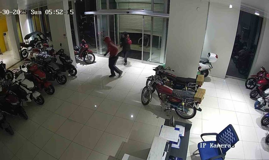 Olay anı, iş yerinin güvenlik kameralarına yansıdı. Ertesi sabah galeride motosikletlerin eksik olduğunu fark eden çalışanlar, kayıtları inceleyip durumu polise bildirdi.