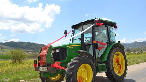 Adana'nın Feke ilçesinde çiftçi Ahmet Duru, düğününde traktörü süsleyerek kullandı. Düğün geleneklerine farklı bir dokunuş getirdi.